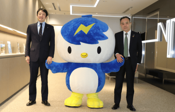 (中央は、西日本電線マスコット:にしぴー広報部長)